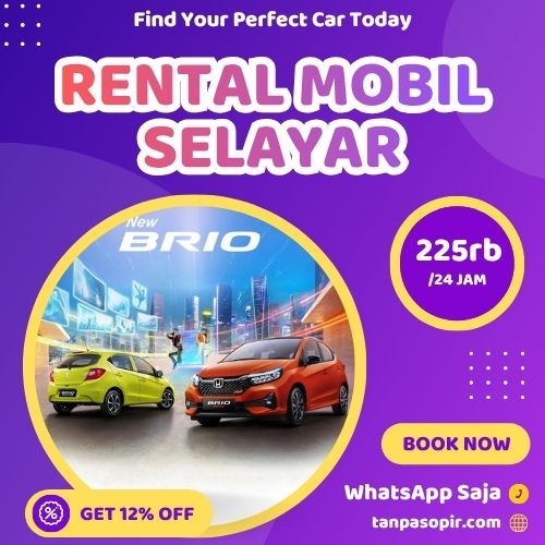 Untuk memenuhi kebutuhan transportasi, berbagai layanan rental mobil Selayar hadir dengan armada beragam, mulai dari mobil kecil seperti Ayla, Agya, dan Brio, hingga kendaraan keluarga dan SUV seperti Avanza, Innova, Xpander, serta Fortuner dan Alphard.